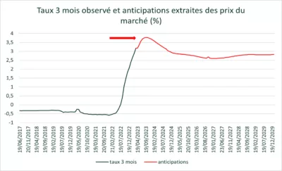 Ainsi les taux n’auraient pas vocation à rester indéfiniment haut, selon les anticipations des spécialistes (cf. graphique).